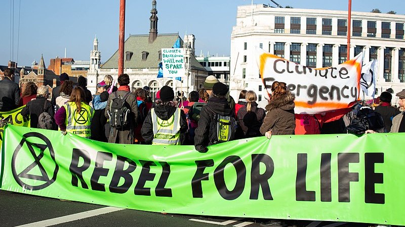 Image: Extinction Rebellion. Banner “Rebel for life”. Source: https://www.flickr.com/photos/8716204@N06/45009830075/ Author: Julia Hawkins, licensed under the Creative Commons Attribution 2.0 Generic license.