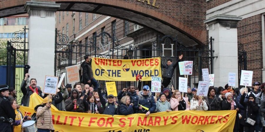 Image: In an unprecedented campaign and historic victory, 1,200 cleaners, caterers, and porters were made direct employees of Imperial College NHS Trust after one of the longest NHS strikes in history. Source: https://www.uvwunion.org.uk/en/campaigns/st-marys-hospital/
