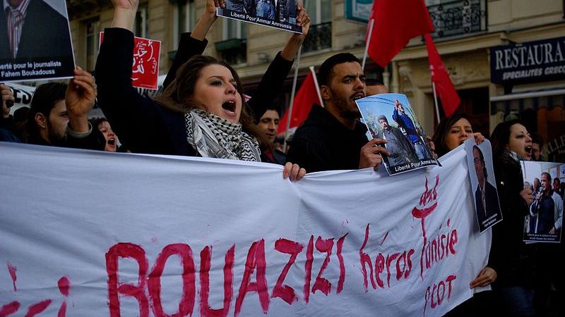 Image: A French protest in support of Mohamed Bouazizi, “Hero of Tunisia”. Source: Flickr: [1]. Author: Antoine Walter, licensed under the Creative Commons Attribution-Share Alike 2.0 Generic license.