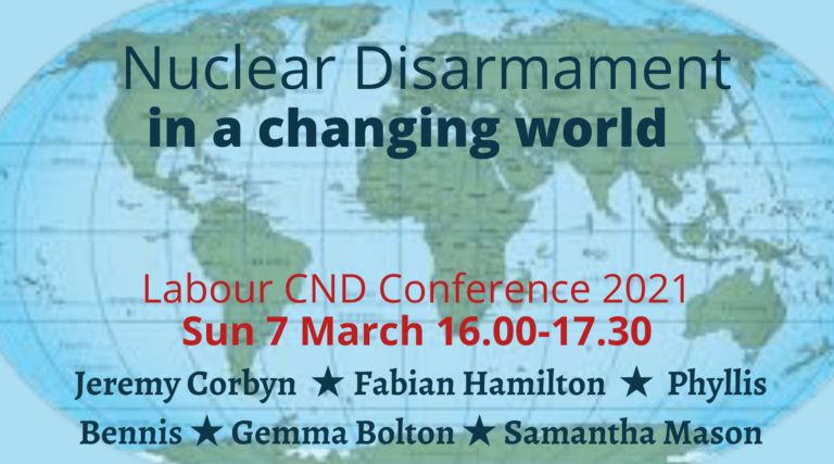 Nuclear Disarmament in a Changing World is live this Sunday 7th March from 16.00 to 17.30, with Jeremy Corbyn MP, US academic and activist Phyllis Bennis, Shadow Minister for Peace and Disarmament Fabian Hamilton, Labour NEC member Gemma Boulton and others.