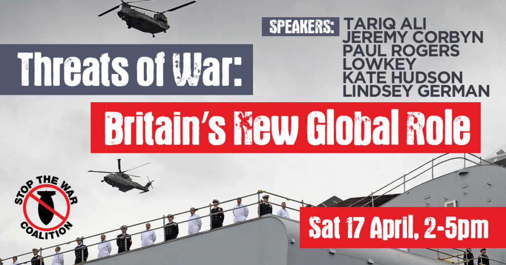 The government has increased the UK’s stockpile of nuclear warheads, ramped up hostility to Russia, invested billions in new cyber and spacewar tech and stepped up the British military presence in the Asia Pacific, all as part of its vision of ‘Global Britain’. Join leading activists, writers and academics in analysing this dangerous new programme of interventionism and discuss how the movement can best counter it. There will be sessions on Britain’s role in the Middle East; Biden and the conflict with China; Final frontiers: the arms trade, space war and AI; Racism and Islamophobia; War and climate change and more. Speakers include: Tariq Ali, Jeremy Corbyn, Lindsey German, Paul Rogers, Lowkey, Kate Hudson and more. |