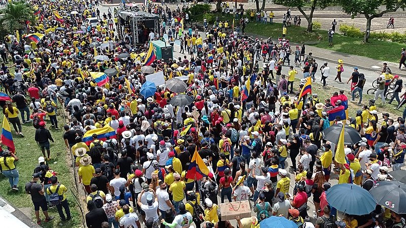 Image: Protests against the tax reform on May 1st 2021 in Cali. Author: Remux, licensed under the Creative Commons Attribution-Share Alike 4.0 International license.