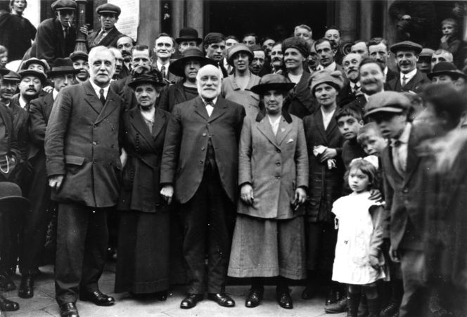 One hundred years ago, the sheriff’s officer arrived at George Lansbury’s house on Bow Road in East London to arrest him. George was a Labour member of Poplar Borough Council, the previous year’s Mayor and the former (and future) local MP. The officer arrested not just George but his son Edgar, plus fellow councillors Dave Adams and Albert Baker. They went willingly, after the officer waited patiently for them to get ready and while the Lansbury family parrot entertained the guests.
