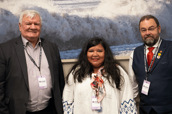 Nicky Wilson, President of the National Union of Miners, Rossana Leal, Hastings & Rye CLP delegate to the 2021 Party Conference and Chris Kitchen, General Secretary NUM. Photo credit: Sean Jordan