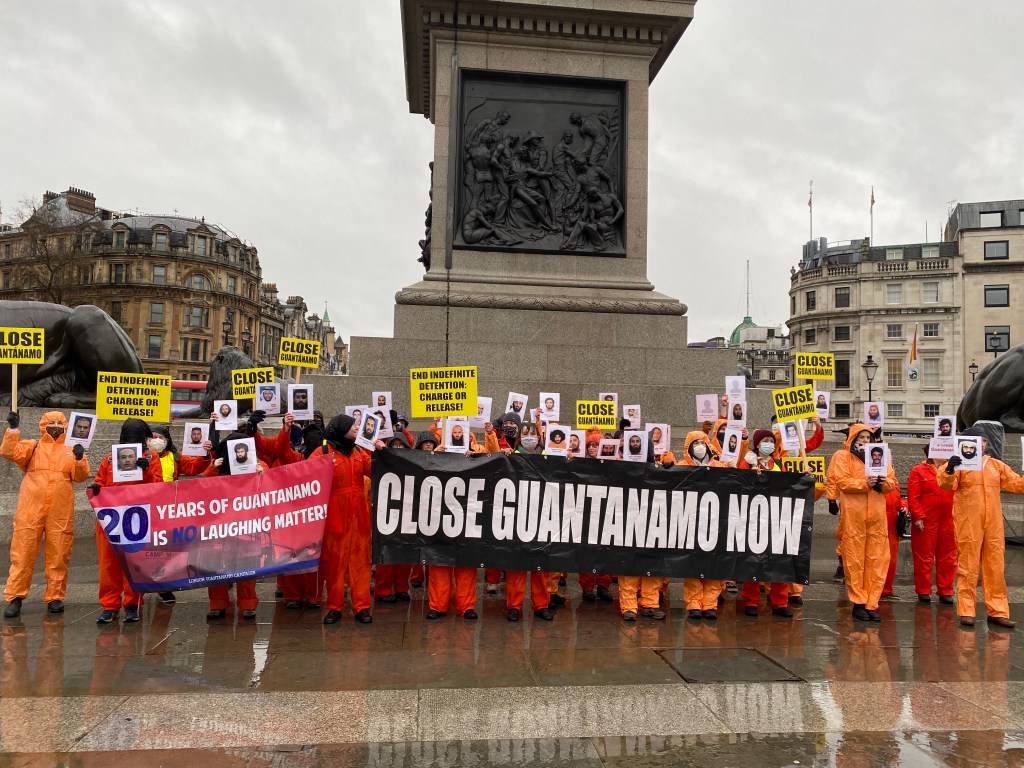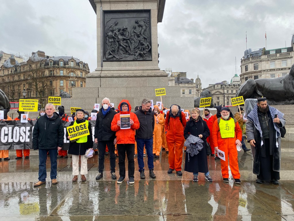 Main image: Guantánamo protest, courtesy of author. Images in text: Activists in an action organised by Amnesty Brighton on January 8th 2022 to mark 20 years of Guantánamo Bay, courtesy of Sara Birch