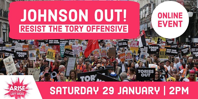 - Johnson Out! Resist the Tory Offensive takes place this Saturday (January 29th) at 2pm and is hosted by Arise – A Festival of Left Ideas.