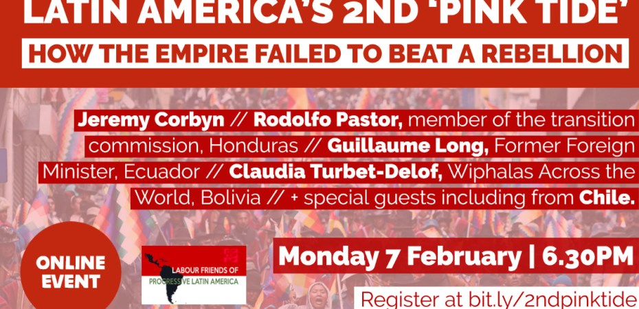Jeremy Corbyn // Rodolfo Pastor, member of the transition commission, Honduras // Guillaume Long, Former Foreign Minister, Ecuador // Claudia Turbet-Delof, Wiphalas Across the World, Bolivia // Jess Barnard, Young Labour, reporting back on delegation to Brazil // + special guests tba including from Chile.