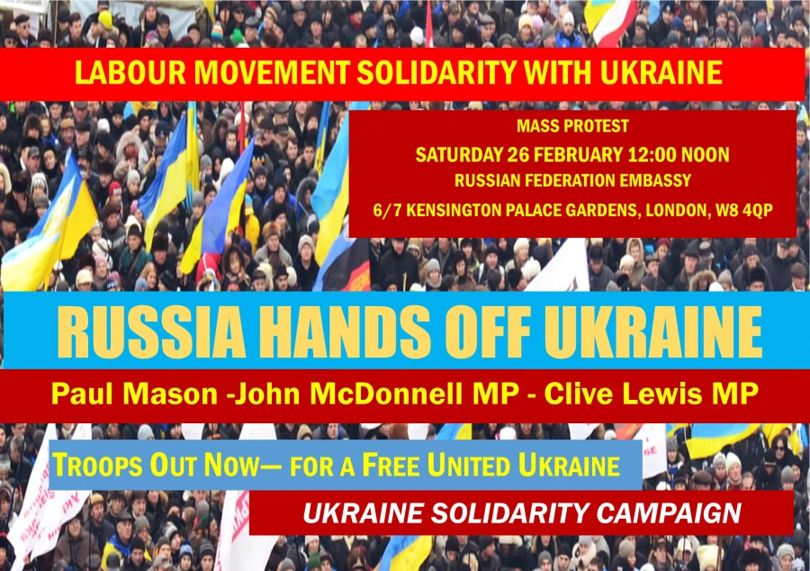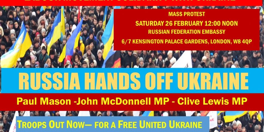 RUSSIA – HANDS OFF UKRAINE! Protest at the Russian embassy in London, Saturday 26th February, noon. Speakers include @johnmcdonnellMP @labourlewis @paulmasonnews