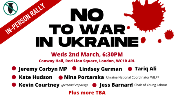 As the crisis in Ukraine escalates the drum beats for war get louder. Join us at Conway Hall on Wednesday to hear how the anti-war movement must respond.