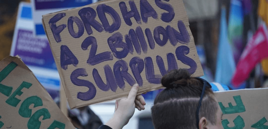 But it is Ford and his government who are guaranteeing school closings by refusing to bargain with the CUPE workers – even after their dramatic compromise offer – knowing full well that this will surely cause chaos.