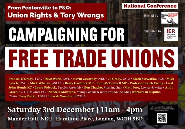 1) CONFERENCE: From Pentonville to P&O: union rights & Tory wrongs – Campaigning for Free Trade Unions.
