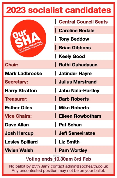 The SHA is very proud to work with a group of principled MPs and councillors in Labour in the fight to defend the NHS. To win we need to build the broadest alliance across the labour movement and among NHS campaign groups. We want you to join the SHA.