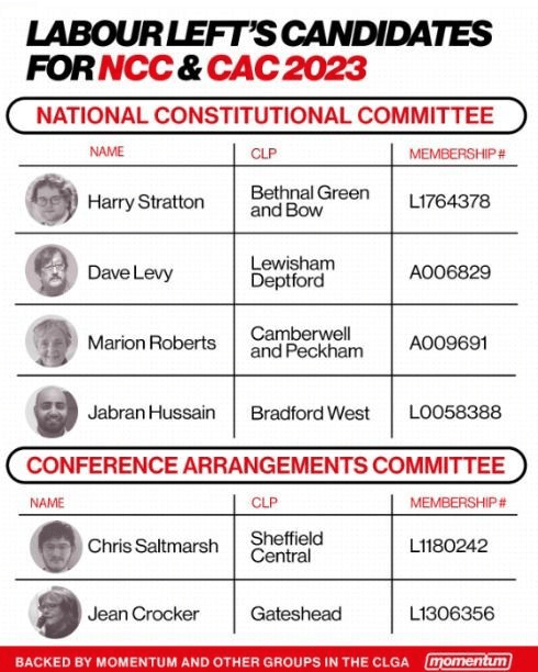 Elections will also be held for Labour’s National Constitutional Committee, the Party’s disciplinary body which oversees appeals. The Starmer leadership has faced accusations of authoritarianism after embarking on a sustained spree of proscriptions and suspensions aimed at forcing out the left, including an ‘Orwellian’ proscription rule which sees members auto-expelled if deemed to have in any way supported a proscribed organisation, even if the offence took place before the group was proscribed. Momentum and the CLGA Organisations are backing Harry Stratton, Dave Levy, Marion Roberts and Jabran Hussain.
