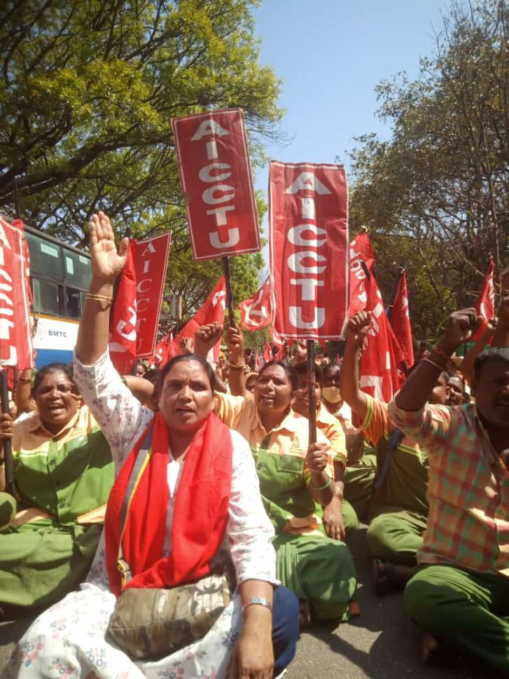 Images: Main: Part of the mass rally; Second: People arriving from the villages; Third: Sanitation workers in struggle. All c/o South Asia Solidarity Group Collective