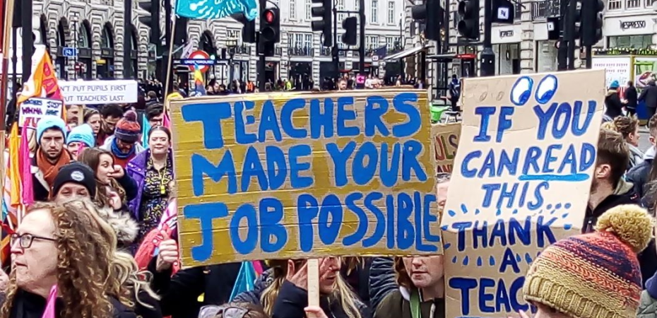 Image: Teachers marching through London, March 15th 2023, c/o Mike Phipps
