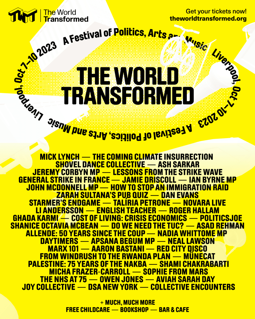 The World Transformed (TWT) has announced a programme for its annual festival, which will run adjacent to the Labour Party conference in Liverpool from 7th to 10th October.