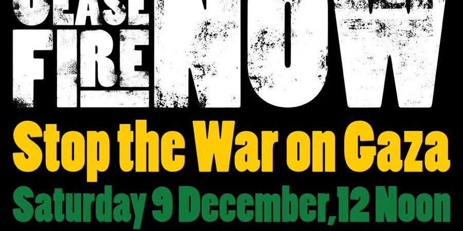 In the UK, another massive demonstration for a ceasefire will take to the streets of London tomorrow. Notwithstanding the onset of the festive season, the pressure must be maintained and intensified.