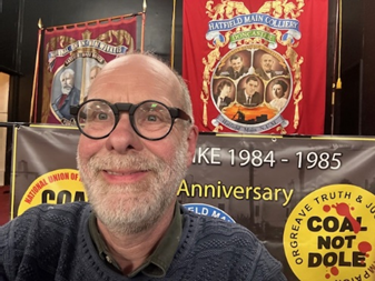 Bryn Griffiths in front of the Hatfield Main NUM Banners.