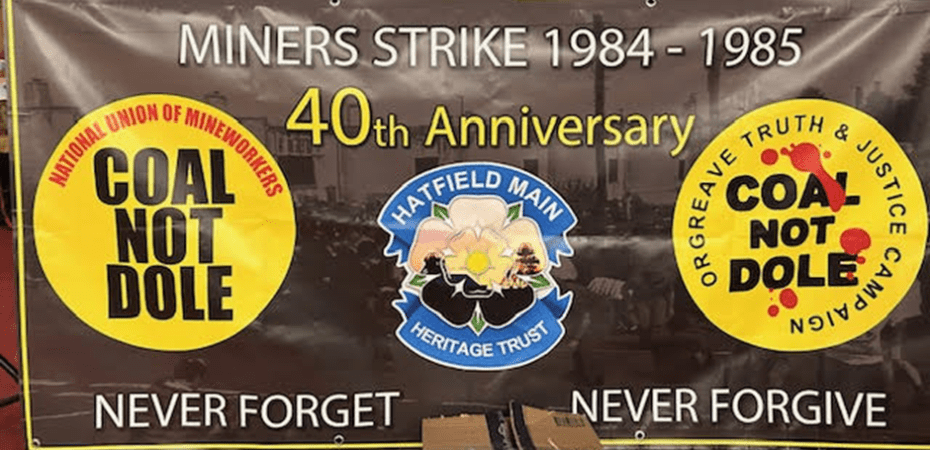 On Saturday 9th March 2024, I had an emotional return with my family to Hatfield Main in South Yorkshire to mark the fortieth anniversary of the Great Miners’ Strike. My Grandad and other family members of that generation had worked in the local pits during the earlier successful strikes of 1972 and 1974. I spent the 1984-85 strike as an activist in the Brighton Miners’ Support Group but my heart always lay with the militant miners of Hatfield Main. Emotion was the order of the day for everyone. As we made our way through the streets, people came out of their houses to clap and show their respect. I spotted one woman shed a tear.