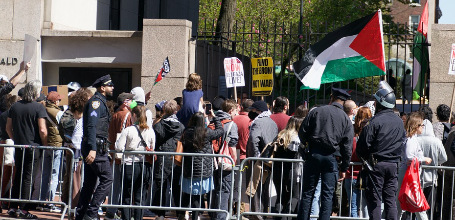 Image: https://commons.wikimedia.org/wiki/File:2024_Columbia_pro-Palestine_protest_16.jpg Protests in and around Columbia University in support of Palestine and against Israeli occupation. Author: SWinxy, licensed under the Creative Commons Attribution-Share Alike 4.0 International license.