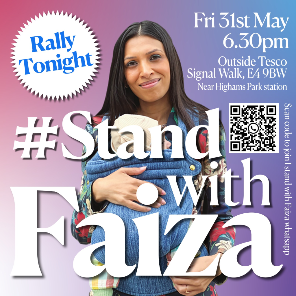 Tonight there is a rally in support of Faiza in her constituency. Come and show your support.