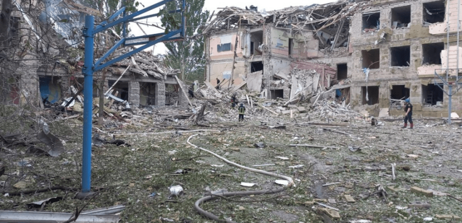 Image: Russian bombing of a school in Kramatorsk, July 21, 2022. Source: https://www.facebook.com/photo/?fbid=421090610058834&set=a.293060042861892. Author: State Emergency Service of Ukraine, licensed under the Creative Commons Attribution 4.0 International license.