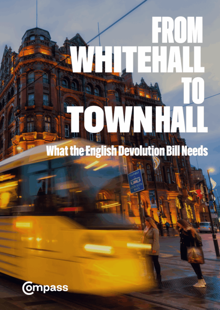Compass, the centre-left pressure group, is today publishing a new report on the Labour Government’s English Devolution Bill. From Whitehall to Townhall: What the English Devolution Bill Needs is written by John Denham, former Secretary of State for Communities and Local Government, Dr Jessica Garland, Director of Policy and Research at the Electoral Reform Society and Sarah Longlands, Chief Executive of the Centre for Local Economic Strategies.