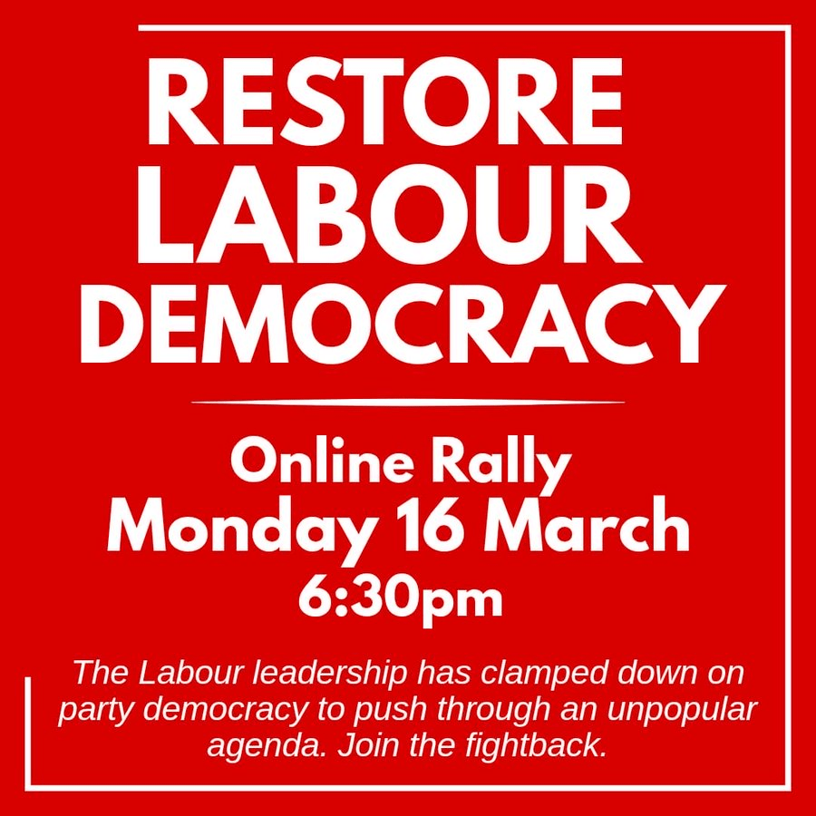 Restore Labour Democracy online event. Monday, March 16th from 6:30 pm to 7:30 pm. Register here.