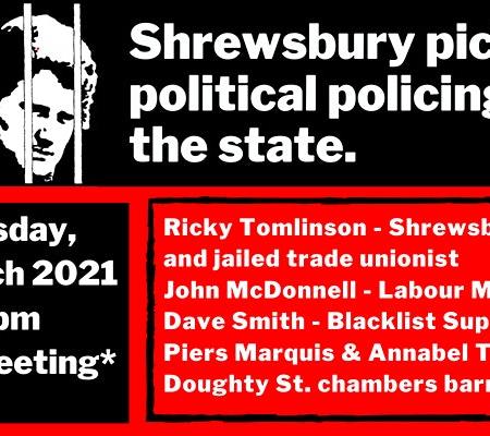March 30, 2021March 31, 2021 Labour Hub Editors Free meeting: Shrewsbury Pickets, Political Policing and the State