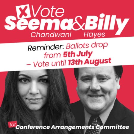 July 4, 2021July 5, 2021 Labour Hub Editors Vote Seema Chandwani and Billy Hayes for Conference Arrangements Committee!